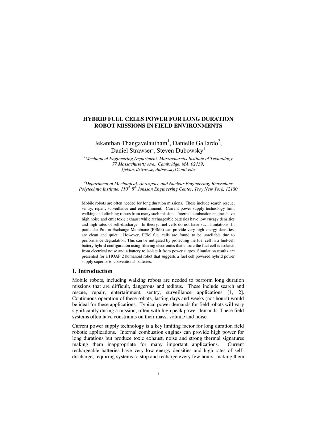Hybrid Fuel Cells Power for Long Duration Robot Missions in Field