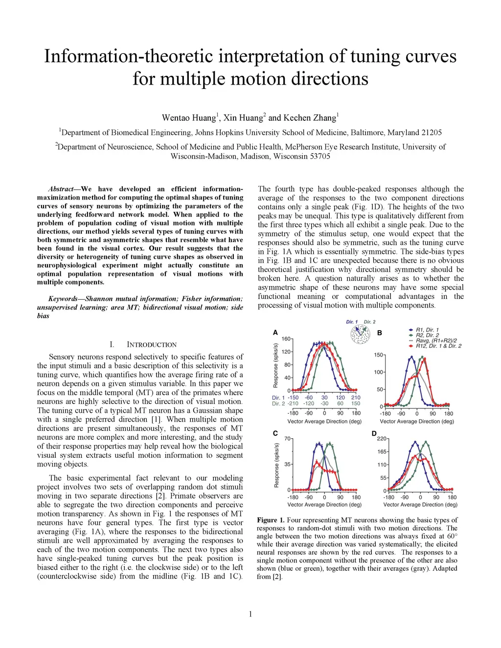 We have developed an efficient information-maximization method for computing the optimal shapes of tuning curves of sensory neurons by optimizing the parameters of the underlying feedforward network model. When applied to the problem of population coding of visual motion with multiple directions, our method yields several types of tuning curves with both symmetric and asymmetric shapes that resemble what have been found in the visual cortex. Our result suggests that the diversity or heterogeneity of tuning curve shapes as observed in neurophysiological experiment might actually constitute an optimal population representation of visual motions with multiple components.