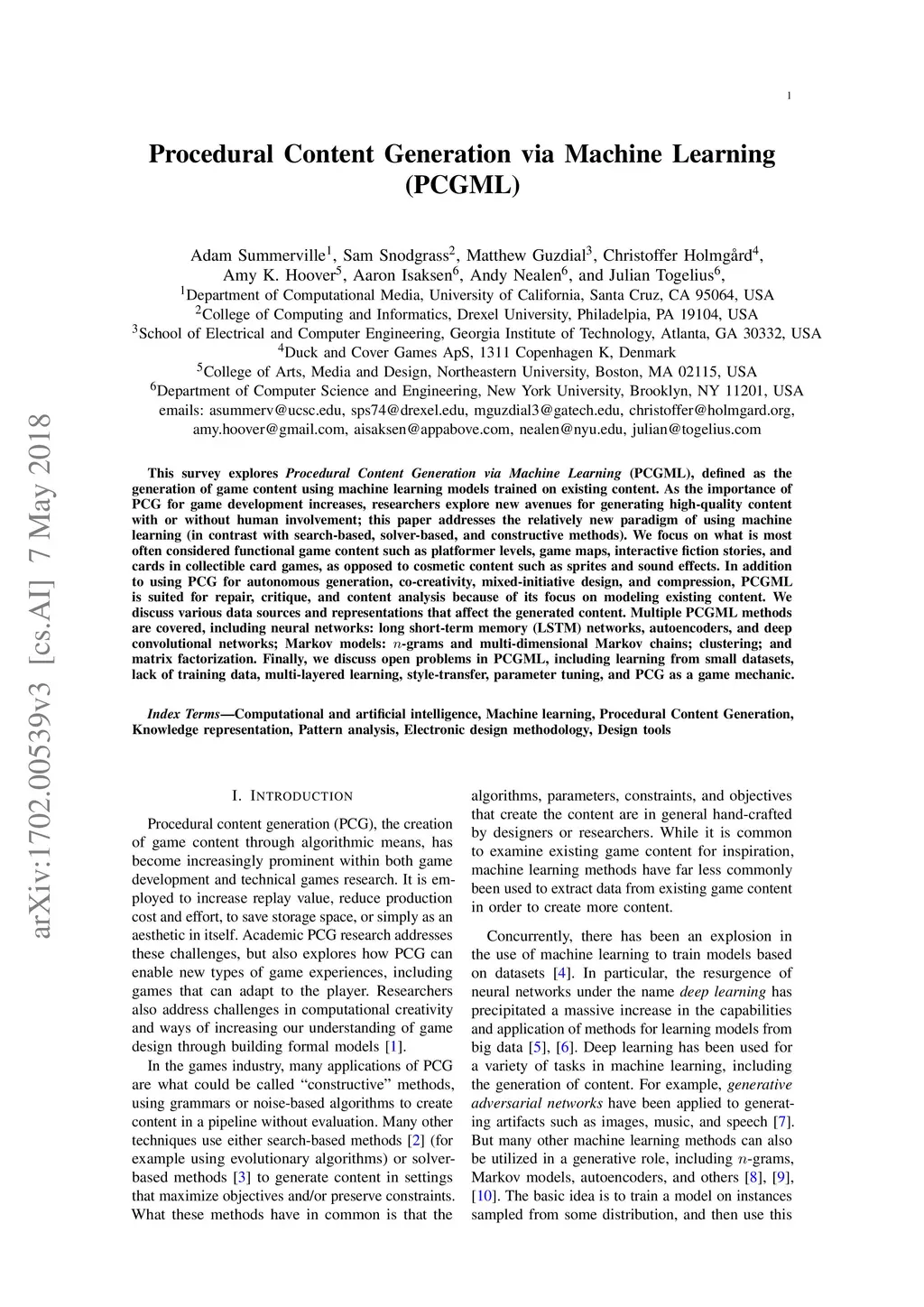 Procedural Content Generation via Machine Learning (PCGML)
