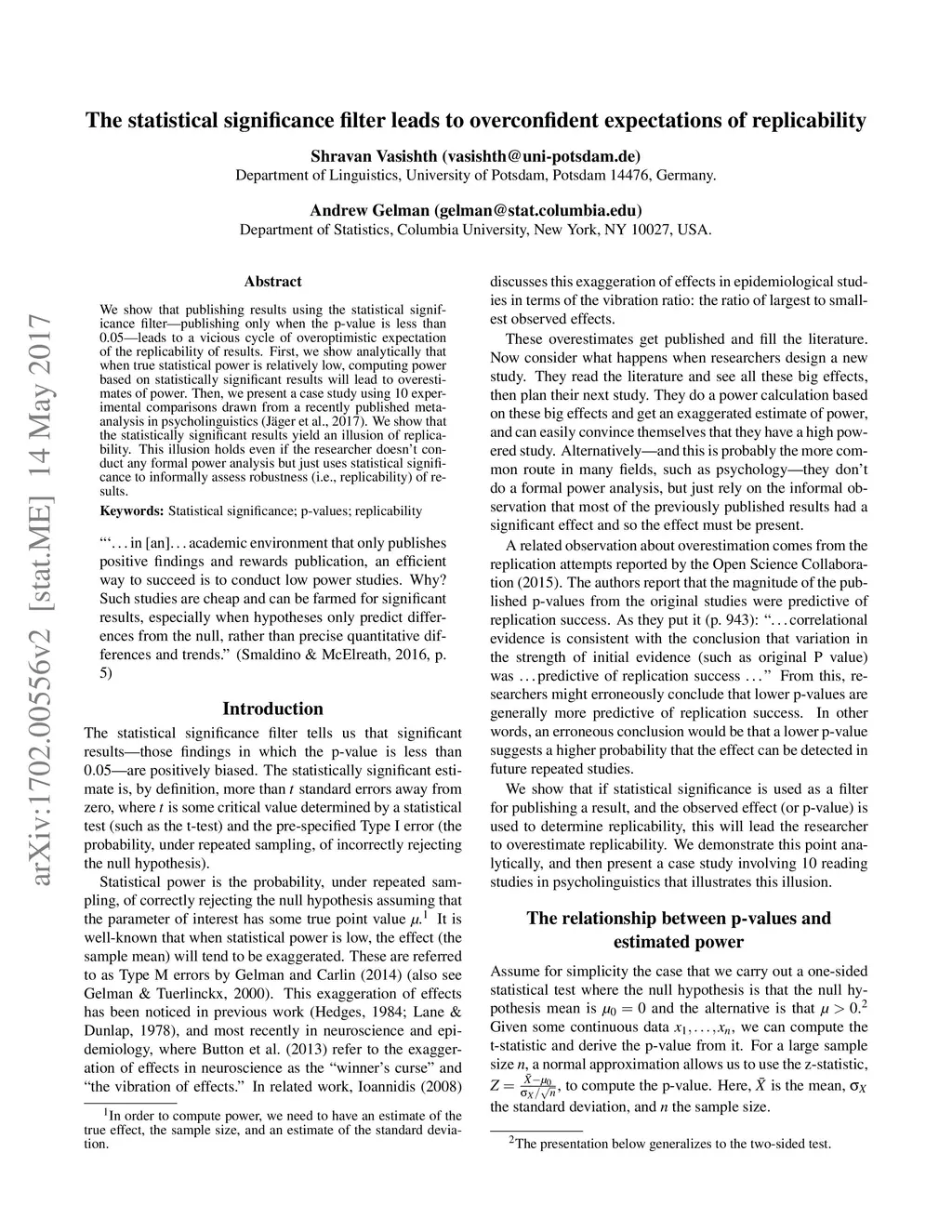 We show that publishing results using the statistical significance filter---publishing only when the p-value is less than 0.05---leads to a vicious cycle of overoptimistic expectation of the replicability of results. First, we show analytically that when true statistical power is relatively low, computing power based on statistically significant results will lead to overestimates of power. Then, we present a case study using 10 experimental comparisons drawn from a recently published meta-analysis in psycholinguistics (J\"ager et al., 2017). We show that the statistically significant results yield an illusion of replicability. This illusion holds even if the researcher doesn't conduct any formal power analysis but just uses statistical significance to informally assess robustness (i.e., replicability) of results.