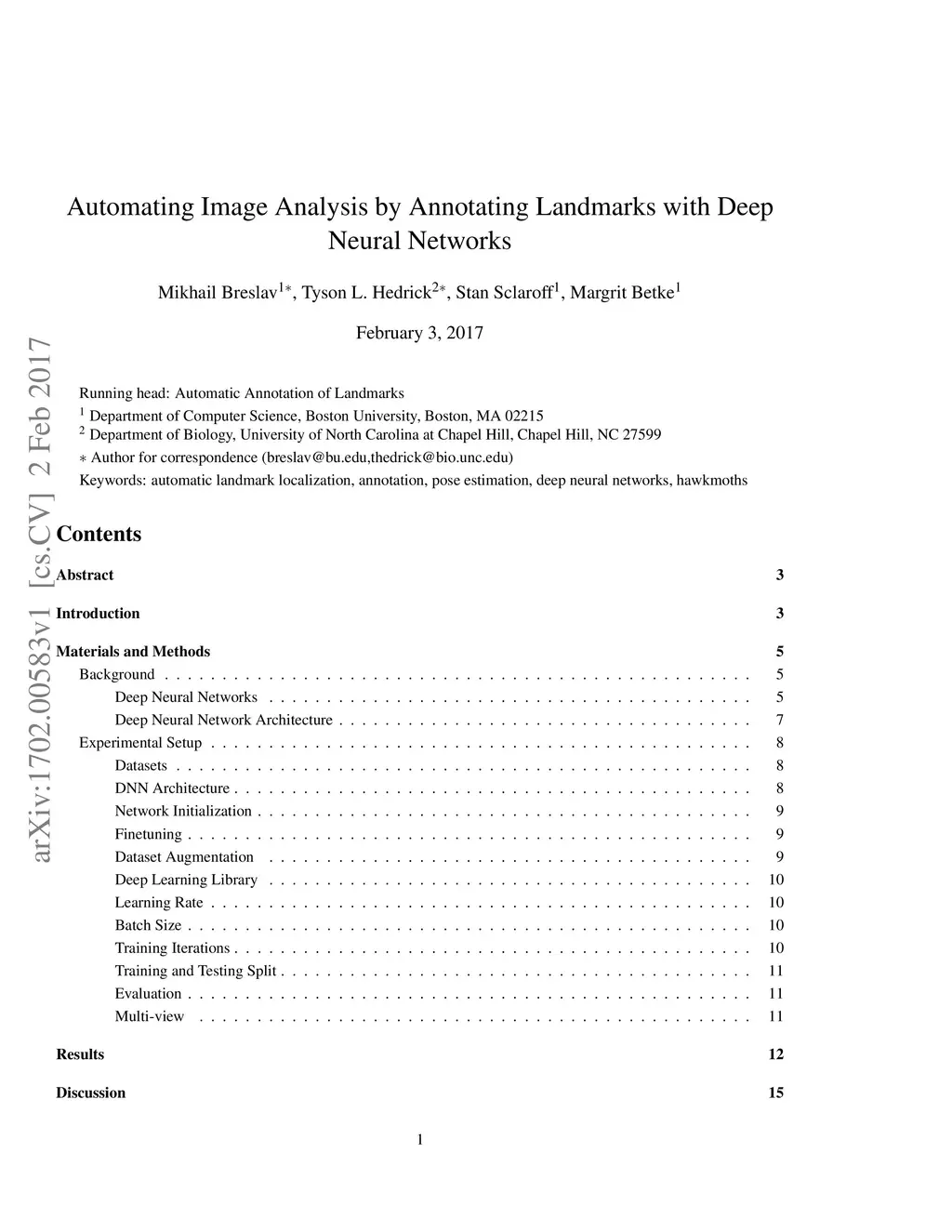Image and video analysis is often a crucial step in the study of animal behavior and kinematics. Often these analyses require that the position of one or more animal landmarks are annotated (marked) in numerous images. The process of annotating landmarks can require a significant amount of time and tedious labor, which motivates the need for algorithms that can automatically annotate landmarks. In the community of scientists that use image and video analysis to study the 3D flight of animals, there has been a trend of developing more automated approaches for annotating landmarks, yet they fall short of being generally applicable. Inspired by the success of Deep Neural Networks (DNNs) on many problems in the field of computer vision, we investigate how suitable DNNs are for accurate and automatic annotation of landmarks in video datasets representative of those collected by scientists studying animals. Our work shows, through extensive experimentation on videos of hawkmoths, that DNNs are suitable for automatic and accurate landmark localization. In particular, we show that one of our proposed DNNs is more accurate than the current best algorithm for automatic localization of landmarks on hawkmoth videos. Moreover, we demonstrate how these annotations can be used to quantitatively analyze the 3D flight of a hawkmoth. To facilitate the use of DNNs by scientists from many different fields, we provide a self contained explanation of what DNNs are, how they work, and how to apply them to other datasets using the freely available library Caffe and supplemental code that we provide.