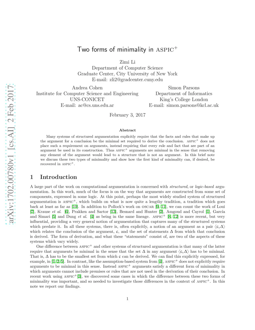 Two forms of minimality in ASPIC+