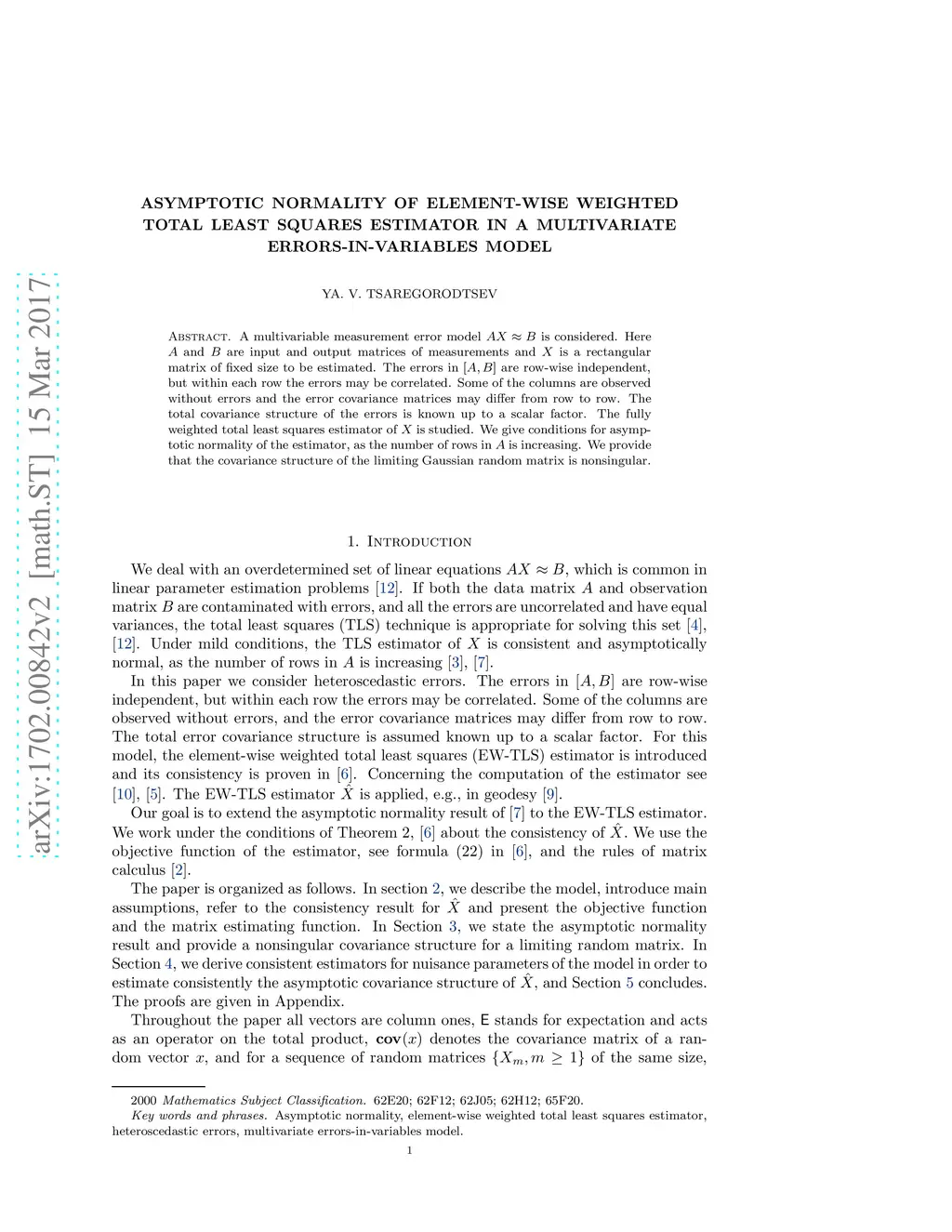 estimator in a multivariate errors-in-variables model