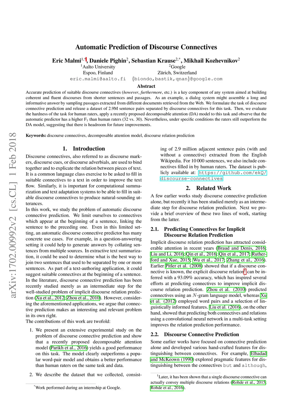 Automatic Prediction of Discourse Connectives
