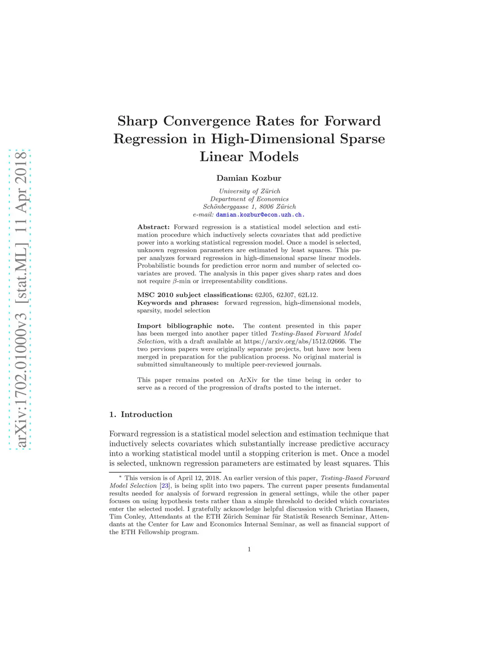 Sharp Convergence Rates for Forward Regression in High-Dimensional