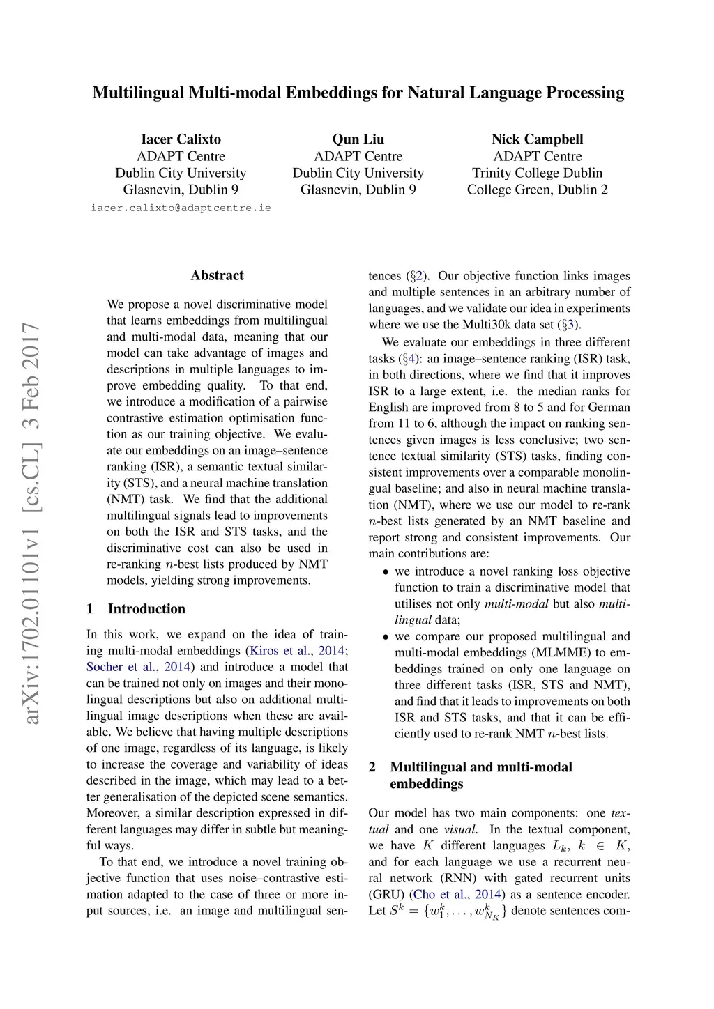 Multilingual Multi-modal Embeddings for Natural Language Processing
