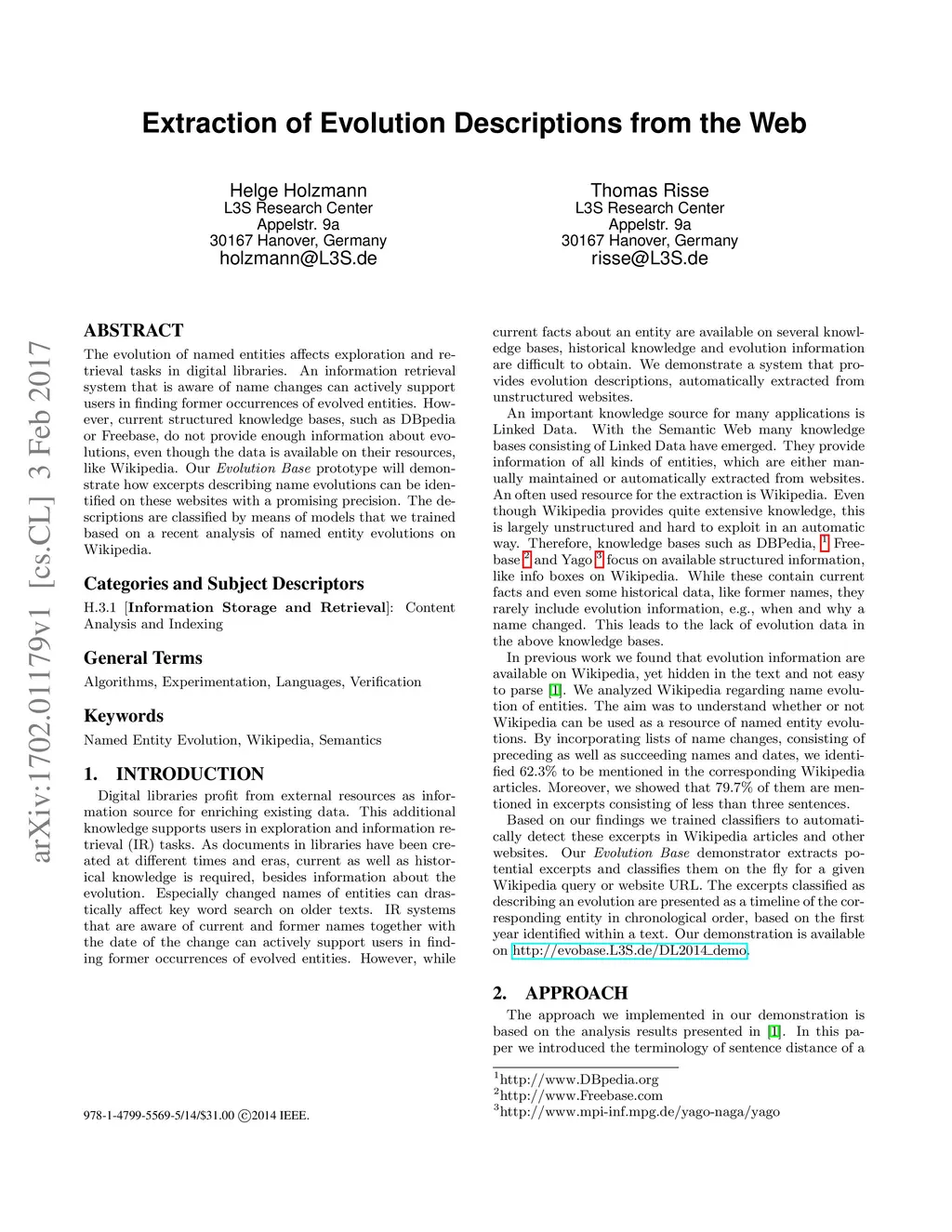The evolution of named entities affects exploration and retrieval tasks in digital libraries. An information retrieval system that is aware of name changes can actively support users in finding former occurrences of evolved entities. However, current structured knowledge bases, such as DBpedia or Freebase, do not provide enough information about evolutions, even though the data is available on their resources, like Wikipedia. Our \emph{Evolution Base} prototype will demonstrate how excerpts describing name evolutions can be identified on these websites with a promising precision. The descriptions are classified by means of models that we trained based on a recent analysis of named entity evolutions on Wikipedia.