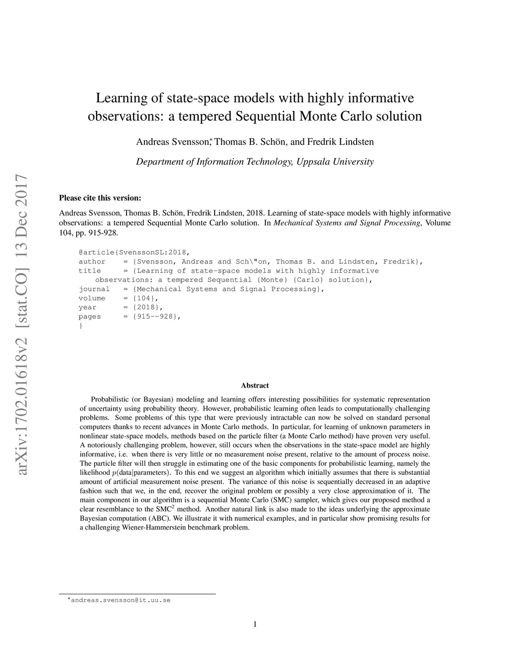 tempered Sequential Monte Carlo solution