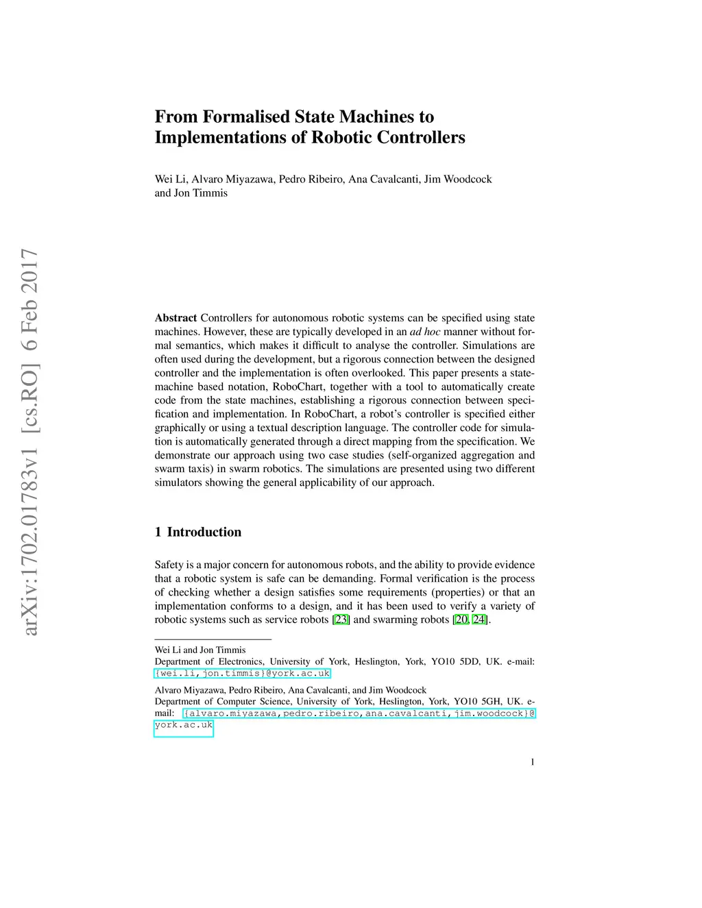 From Formalised State Machines to Implementations of Robotic Controllers