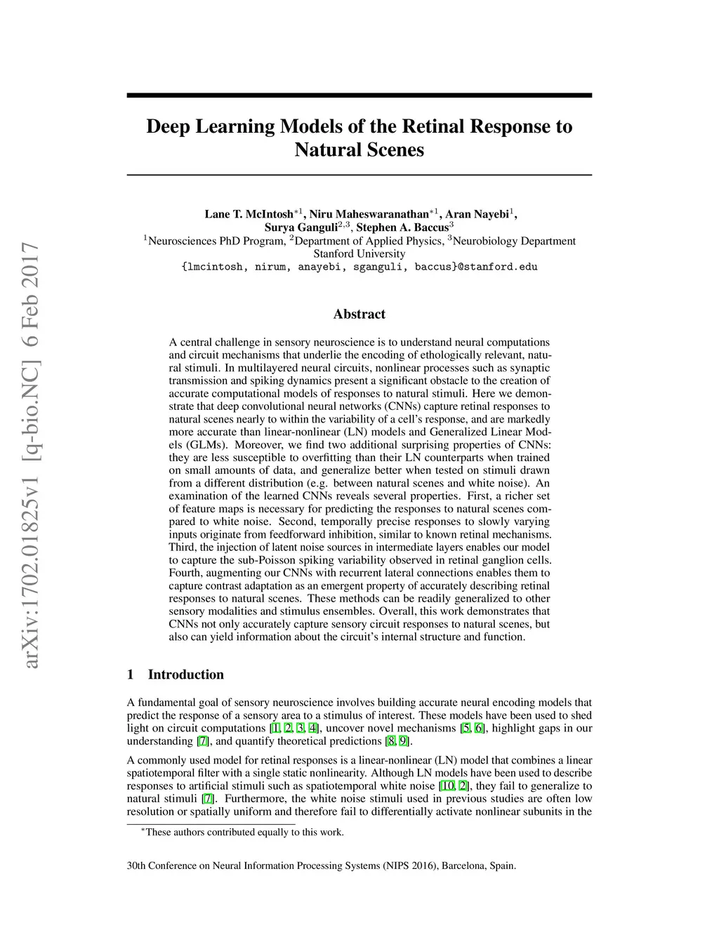 Deep Learning Models of the Retinal Response to Natural Scenes