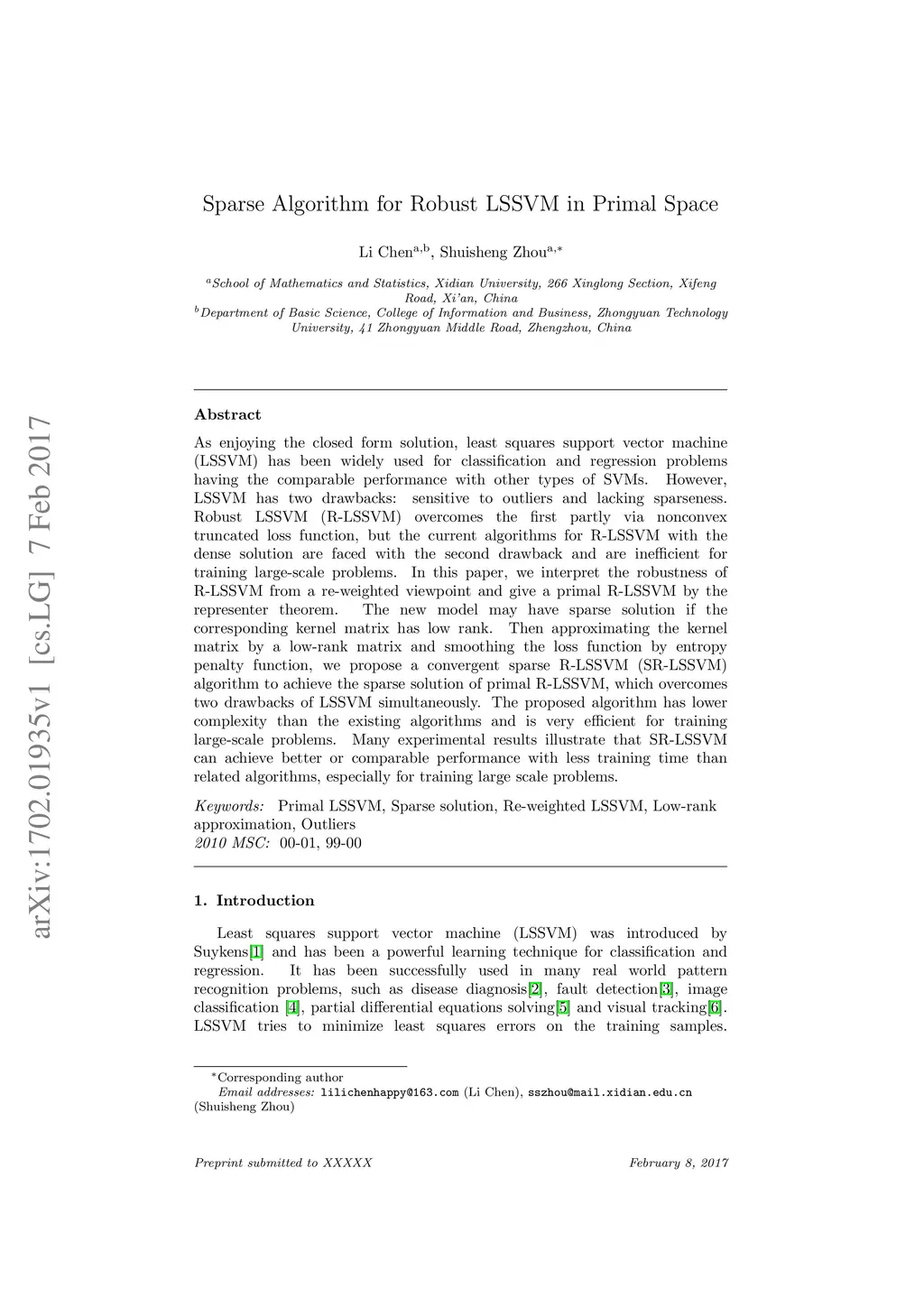 Sparse Algorithm for Robust LSSVM in Primal Space