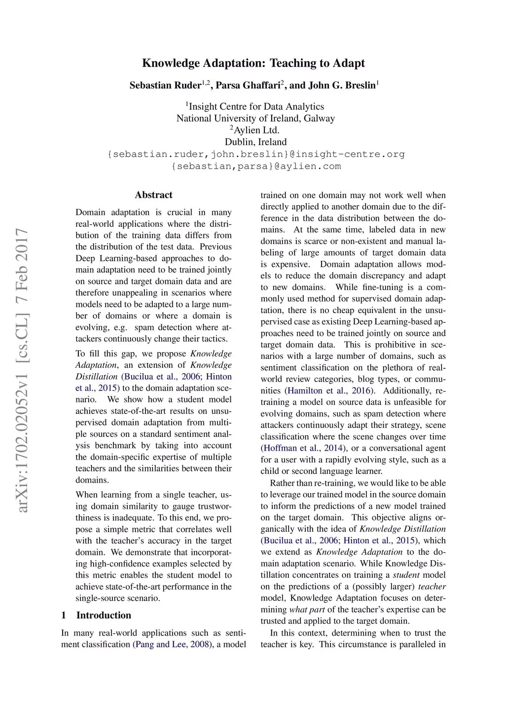 Knowledge Adaptation: Teaching to Adapt