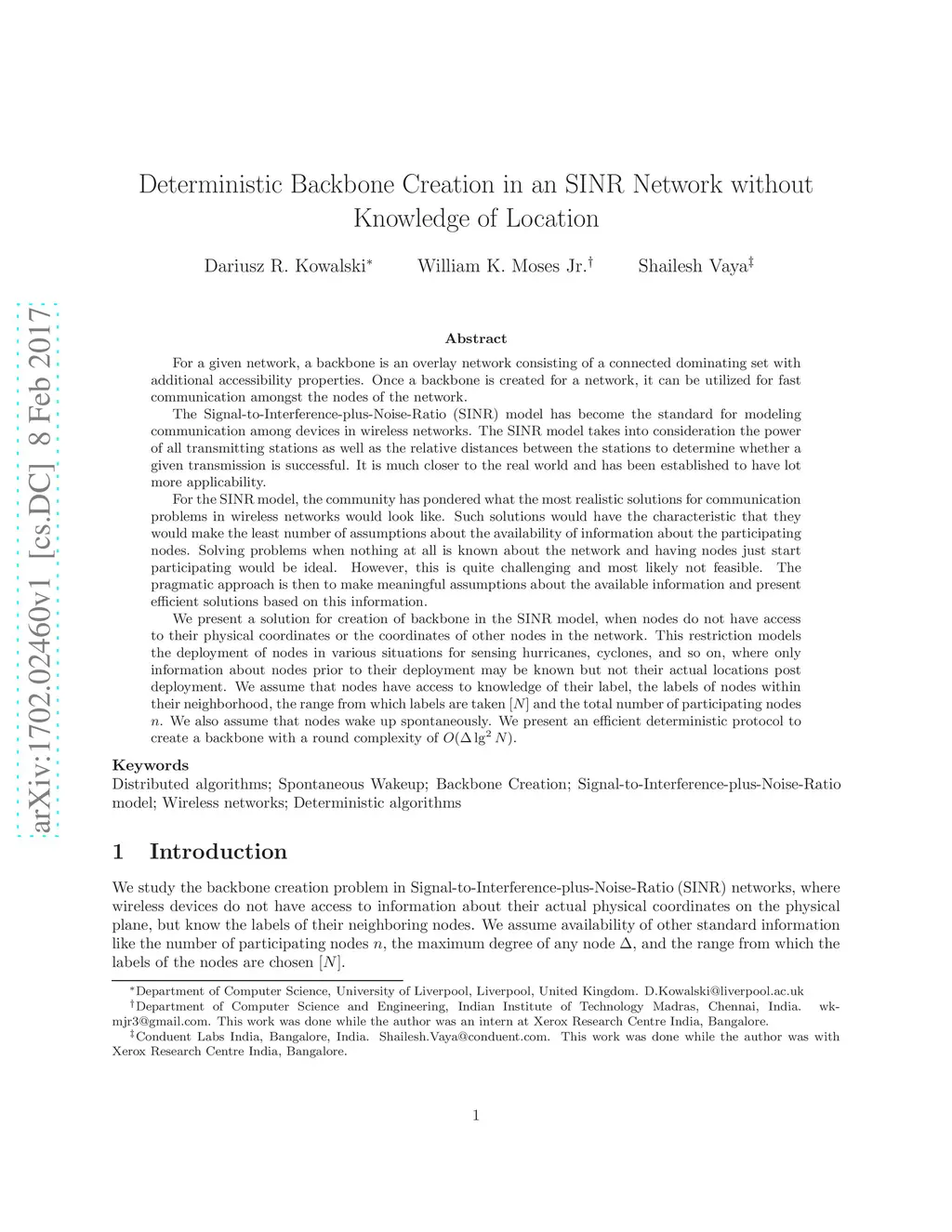Deterministic Backbone Creation in an SINR Network without Knowledge of