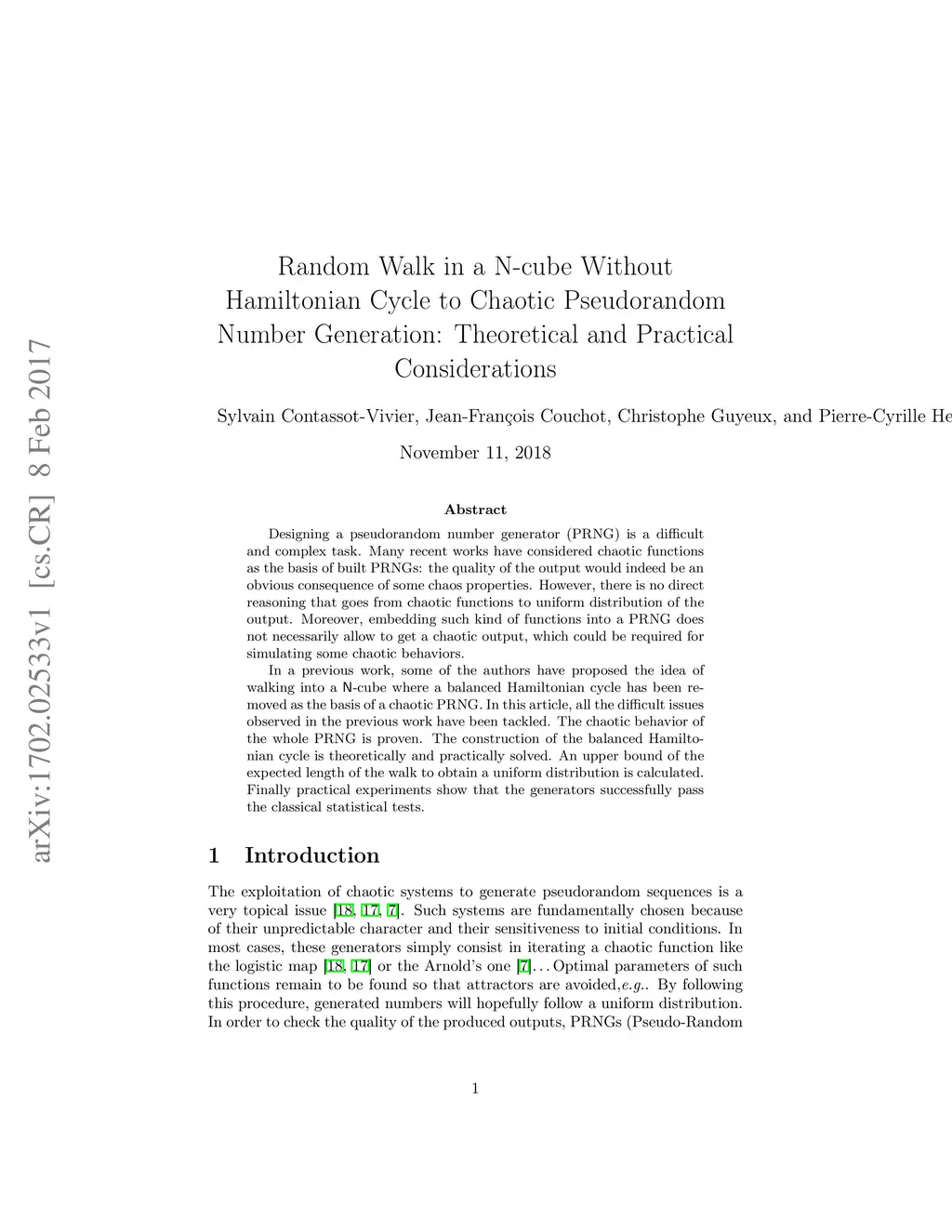 Designing a pseudorandom number generator (PRNG) is a difficult and complex task. Many recent works have considered chaotic functions as the basis of built PRNGs: the quality of the output would indeed be an obvious consequence of some chaos properties. However, there is no direct reasoning that goes from chaotic functions to uniform distribution of the output. Moreover, embedding such kind of functions into a PRNG does not necessarily allow to get a chaotic output, which could be required for simulating some chaotic behaviors. In a previous work, some of the authors have proposed the idea of walking into a -cube where a balanced Hamiltonian cycle has been removed as the basis of a chaotic PRNG. In this article, all the difficult issues observed in the previous work have been tackled. The chaotic behavior of the whole PRNG is proven. The construction of the balanced Hamiltonian cycle is theoretically and practically solved. An upper bound of the expected length of the walk to obtain a uniform distribution is calculated. Finally practical experiments show that the generators successfully pass the classical statistical tests.
