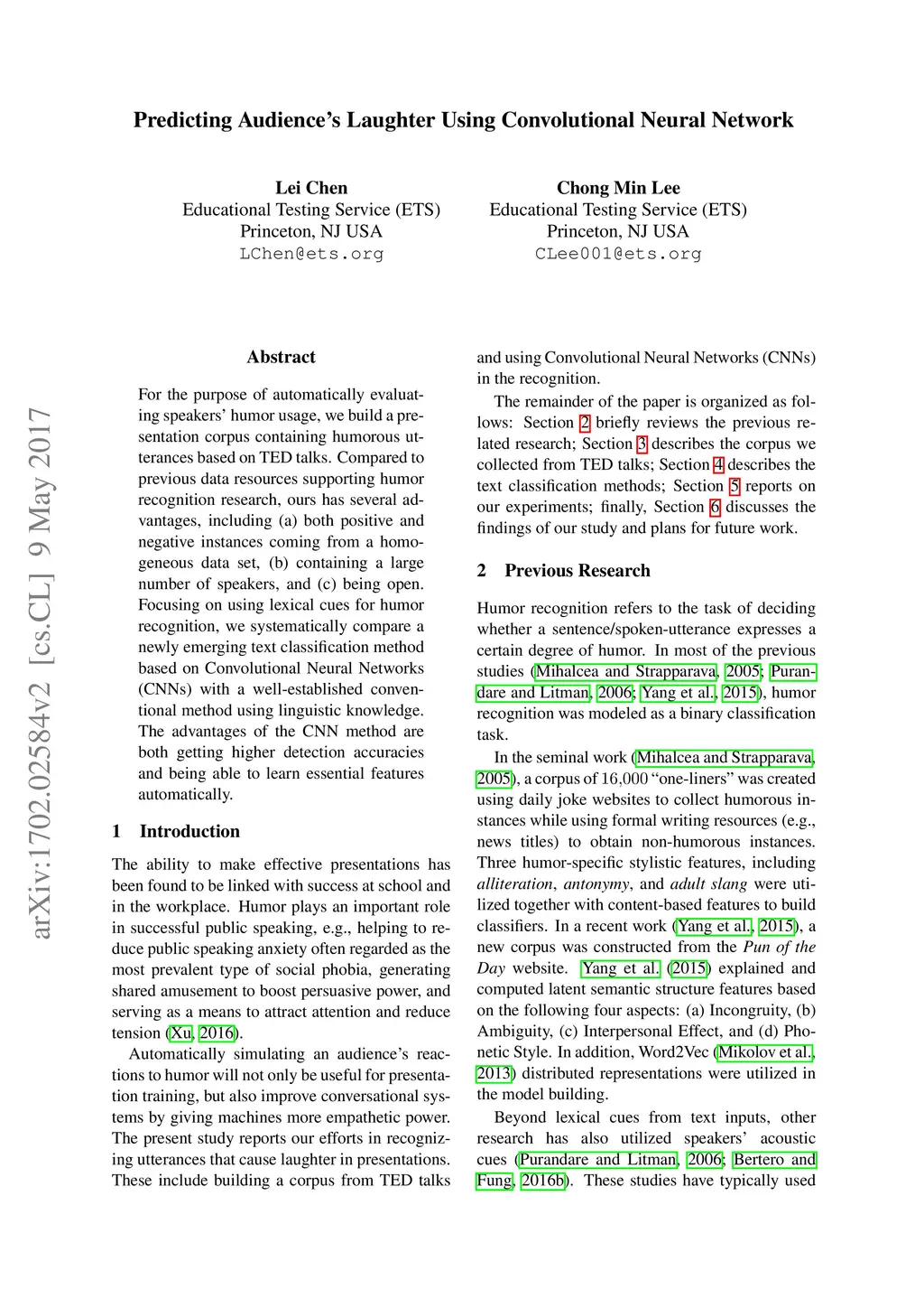 Predicting Audience's Laughter Using Convolutional Neural Network
