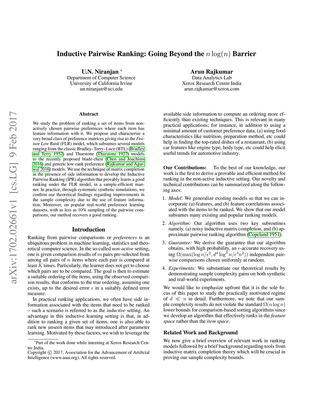 Inductive Pairwise Ranking: Going Beyond the n log(n) Barrier