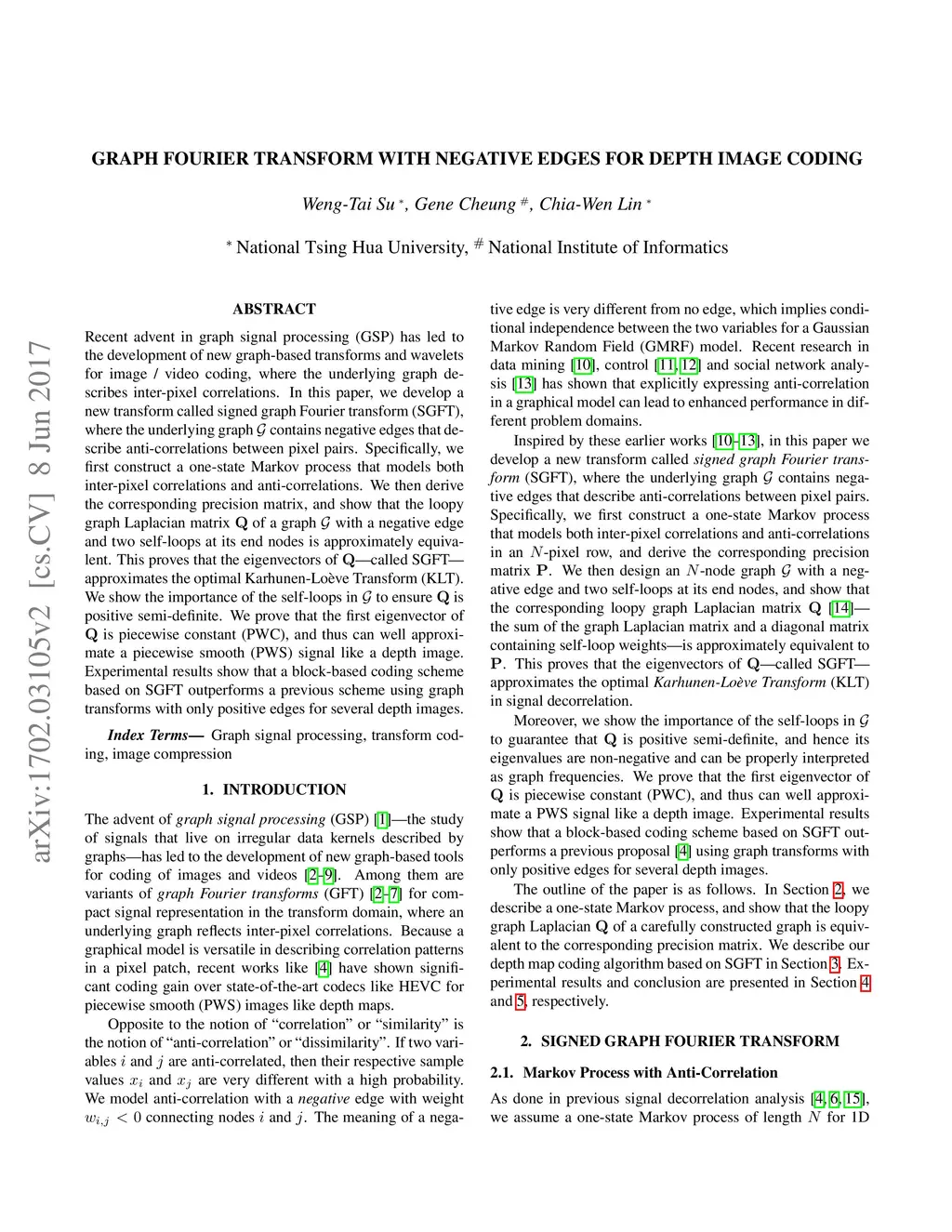 Graph Fourier Transform with Negative Edges for Depth Image Coding