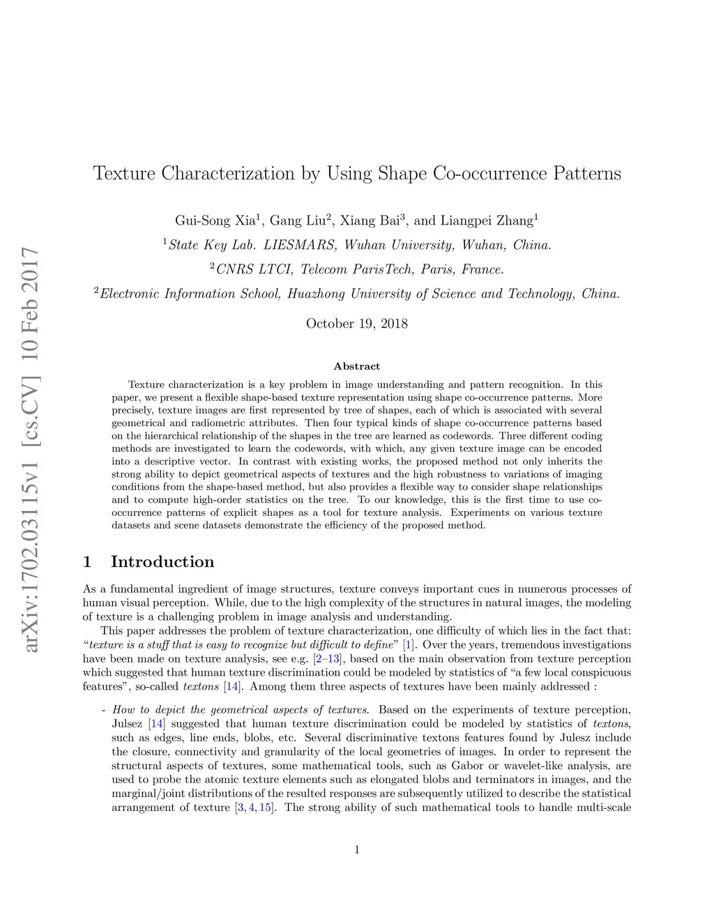 Texture Characterization by Using Shape Co-occurrence Patterns