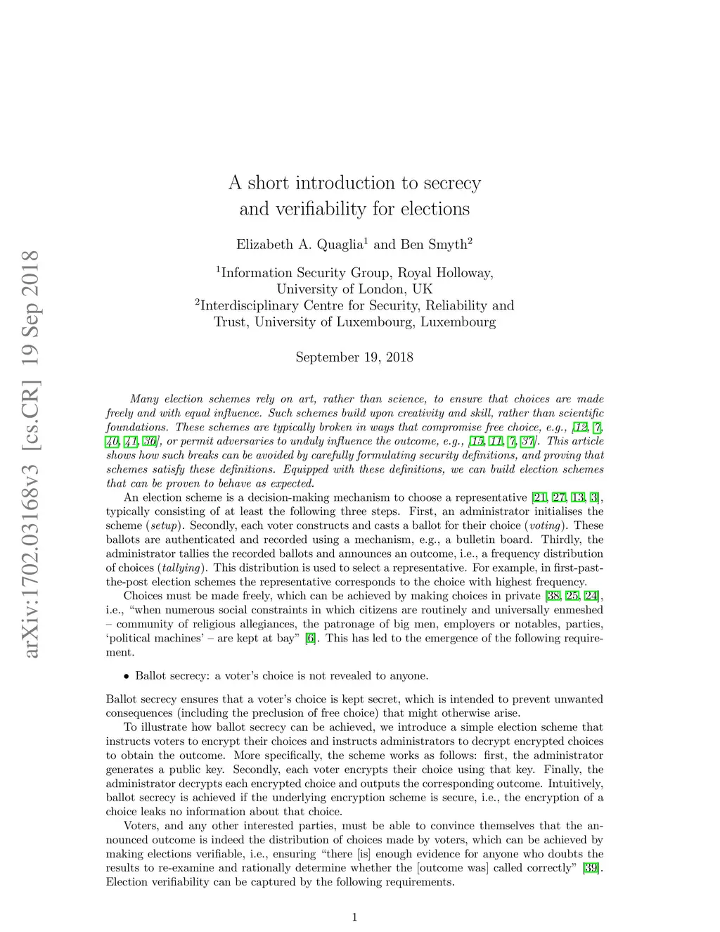 We explore the fundamental properties that are necessary to ensure that election schemes behave as expected. The exploration reveals how our understanding of those expectations has evolved, culminating in the emergence of formal definitions of properties necessary to fulfil expectations. We provide insights into definitions of secrecy and verifiability, allowing us to learn and appreciate the underlying intuition and technical details of these notions. Equipped with definitions, we can build election schemes that can be proven to behave as expected. And, as an illustrative example, we review a variant of the Helios election system that was built and proven secure, in this way. Furthermore, the definitions can be used to analyse existing election schemes, and vulnerabilities have been uncovered. Indeed, we describe a series of vulnerabilities that were discovered during the analysis of the original Helios system, which advanced our understanding of system behaviour and prompted the design of the aforementioned variant. Thus, this article contributes to the science of security by sharing valuable insights into elections, and demonstrating the value that formal definitions and analysis have in building schemes guaranteed to behave as expected.
