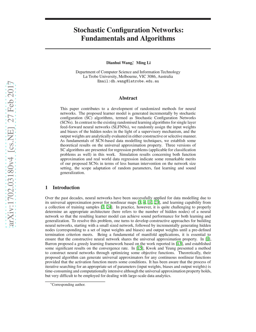Stochastic Configuration Networks: Fundamentals and Algorithms