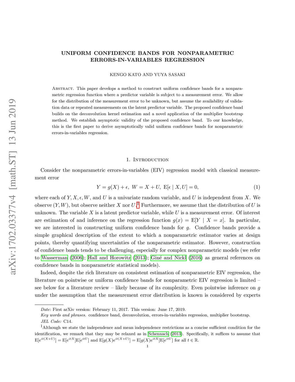 This paper develops a method to construct uniform confidence bands for a nonparametric regression function where a predictor variable is subject to a measurement error. We allow for the distribution of the measurement error to be unknown, but assume the availability of validation data or repeated measurements on the latent predictor variable. The proposed confidence band builds on the deconvolution kernel estimation and a novel application of the multiplier bootstrap method. We establish asymptotic validity of the proposed confidence band. To our knowledge, this is the first paper to derive asymptotically valid uniform confidence bands for nonparametric errors-in-variables regression.