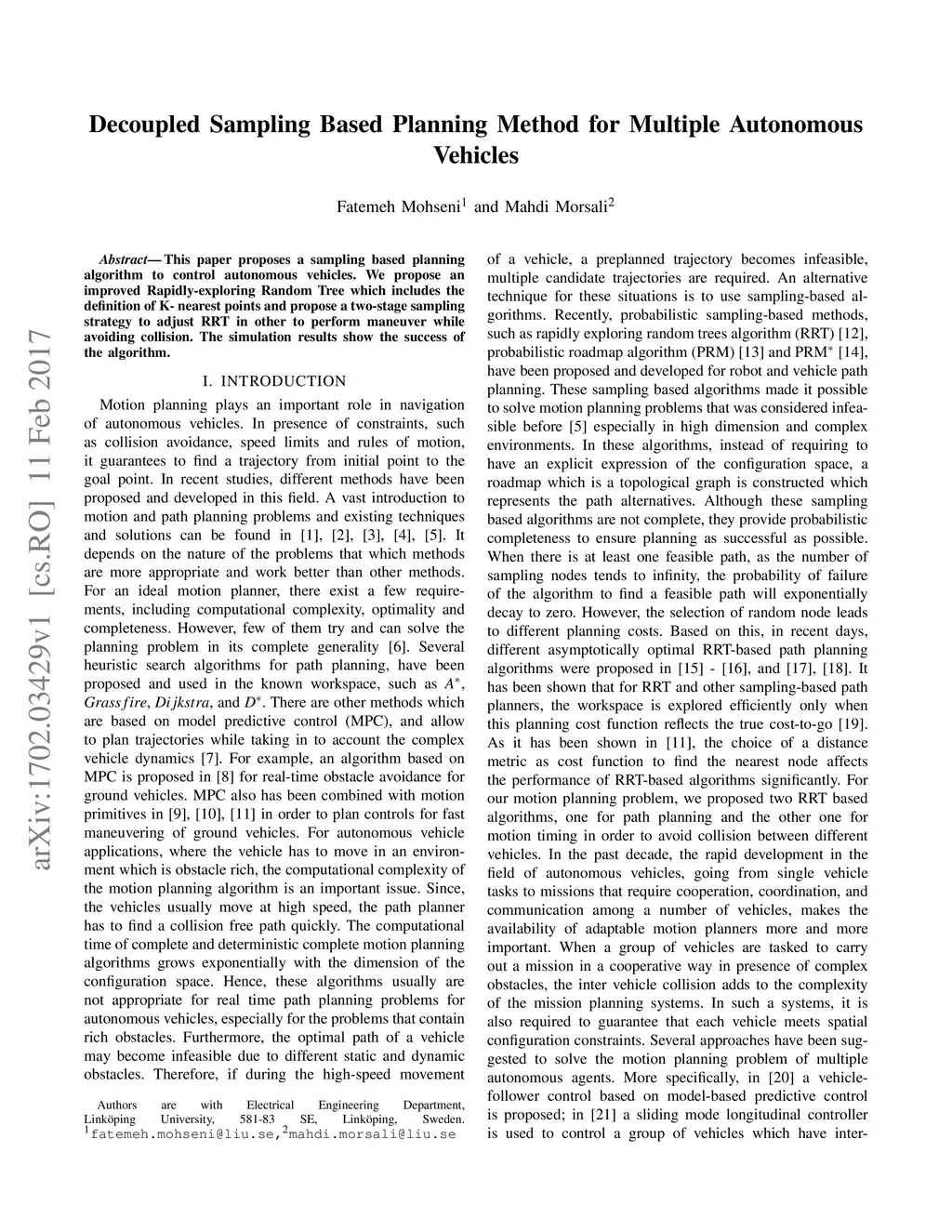 Decoupled Sampling Based Planning Method for Multiple Autonomous