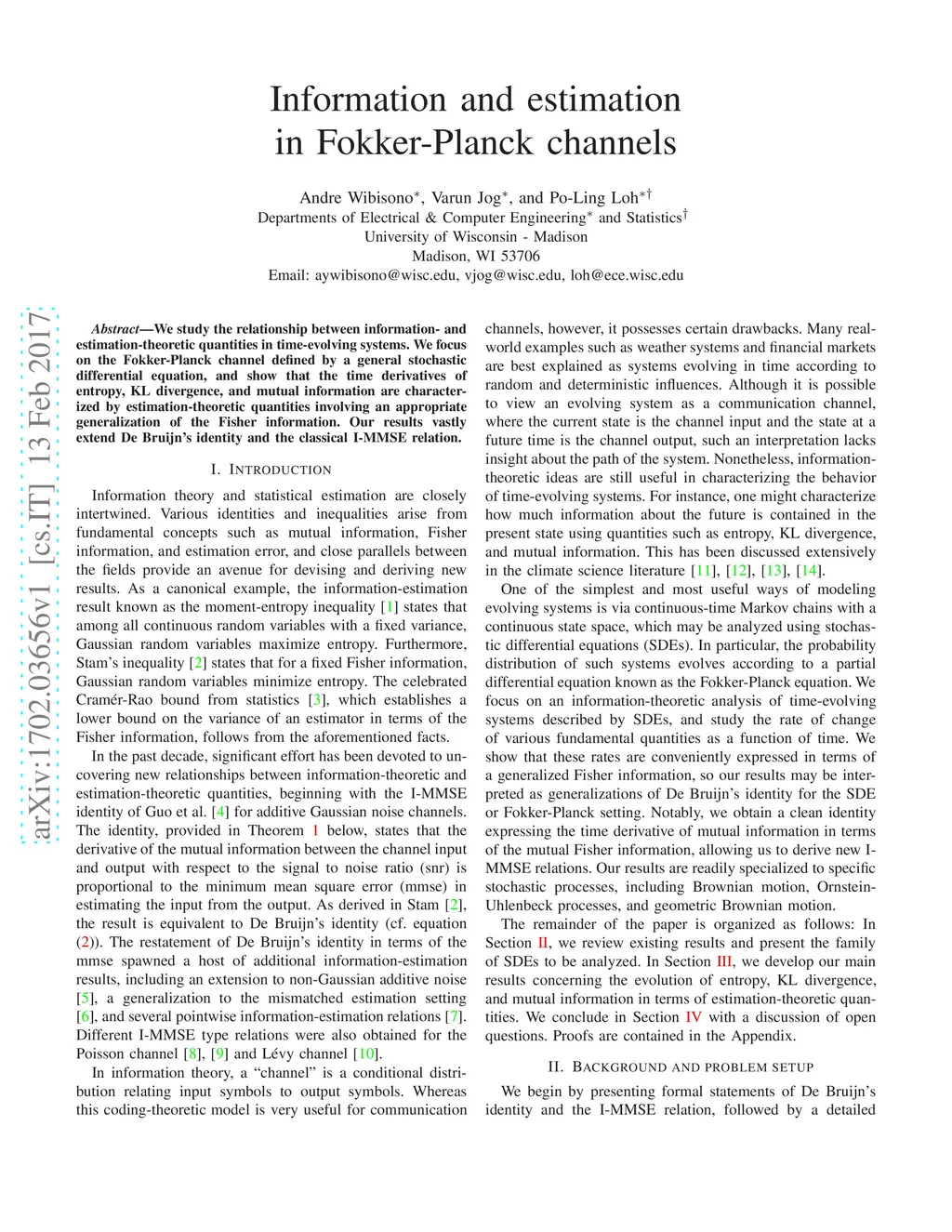 Information and estimation in Fokker-Planck channels