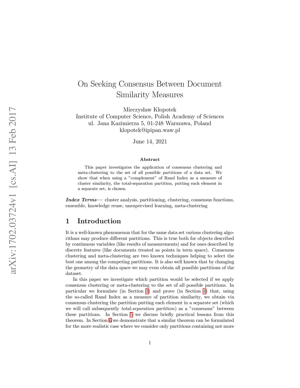 This paper investigates the application of consensus clustering and meta-clustering to the set of all possible partitions of a data set. We show that when using a "complement" of Rand Index as a measure of cluster similarity, the total-separation partition, putting each element in a separate set, is chosen.