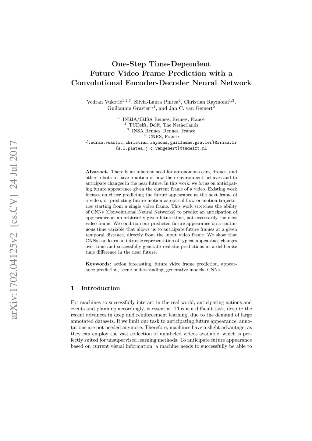 One-Step Time-Dependent Future Video Frame Prediction with a