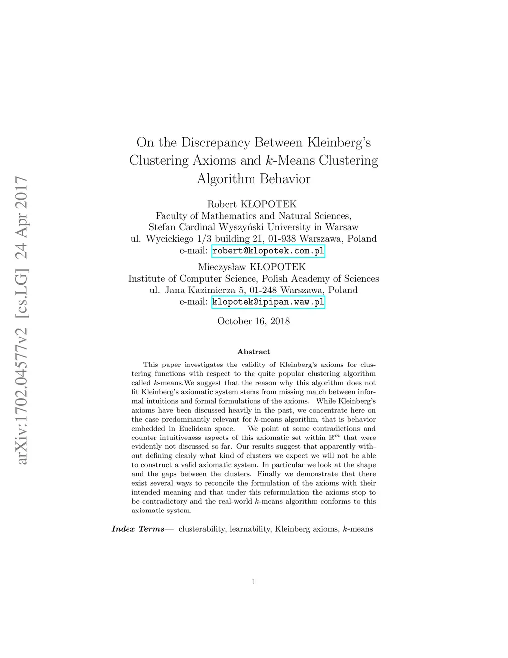 On the Discrepancy Between Kleinberg's Clustering Axioms and -Means