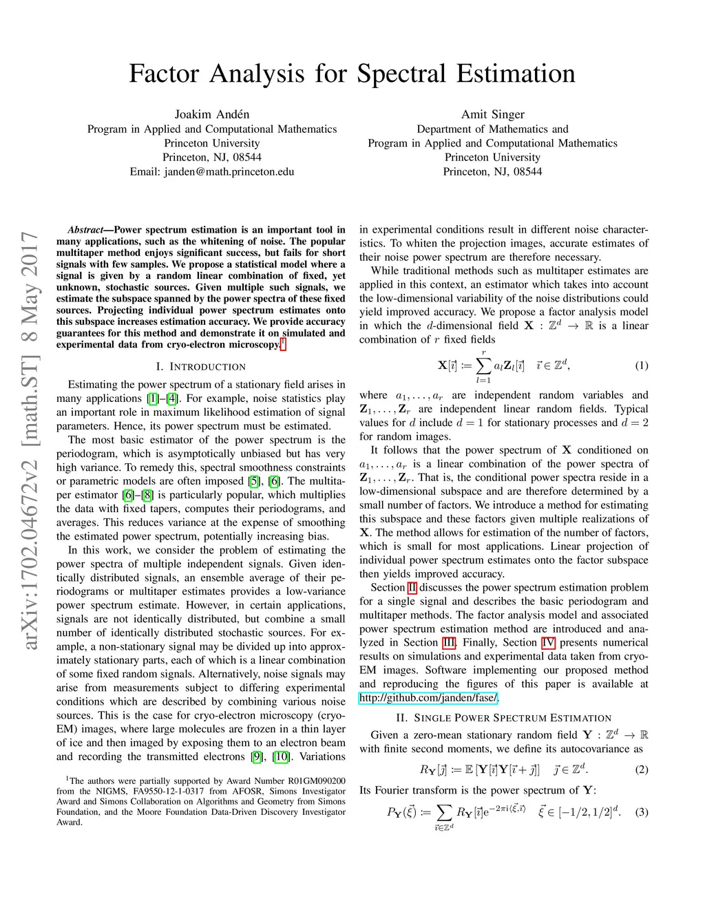 Factor Analysis for Spectral Estimation