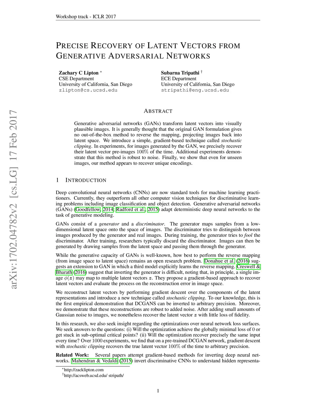 Precise Recovery of Latent Vectors from Generative Adversarial Networks
