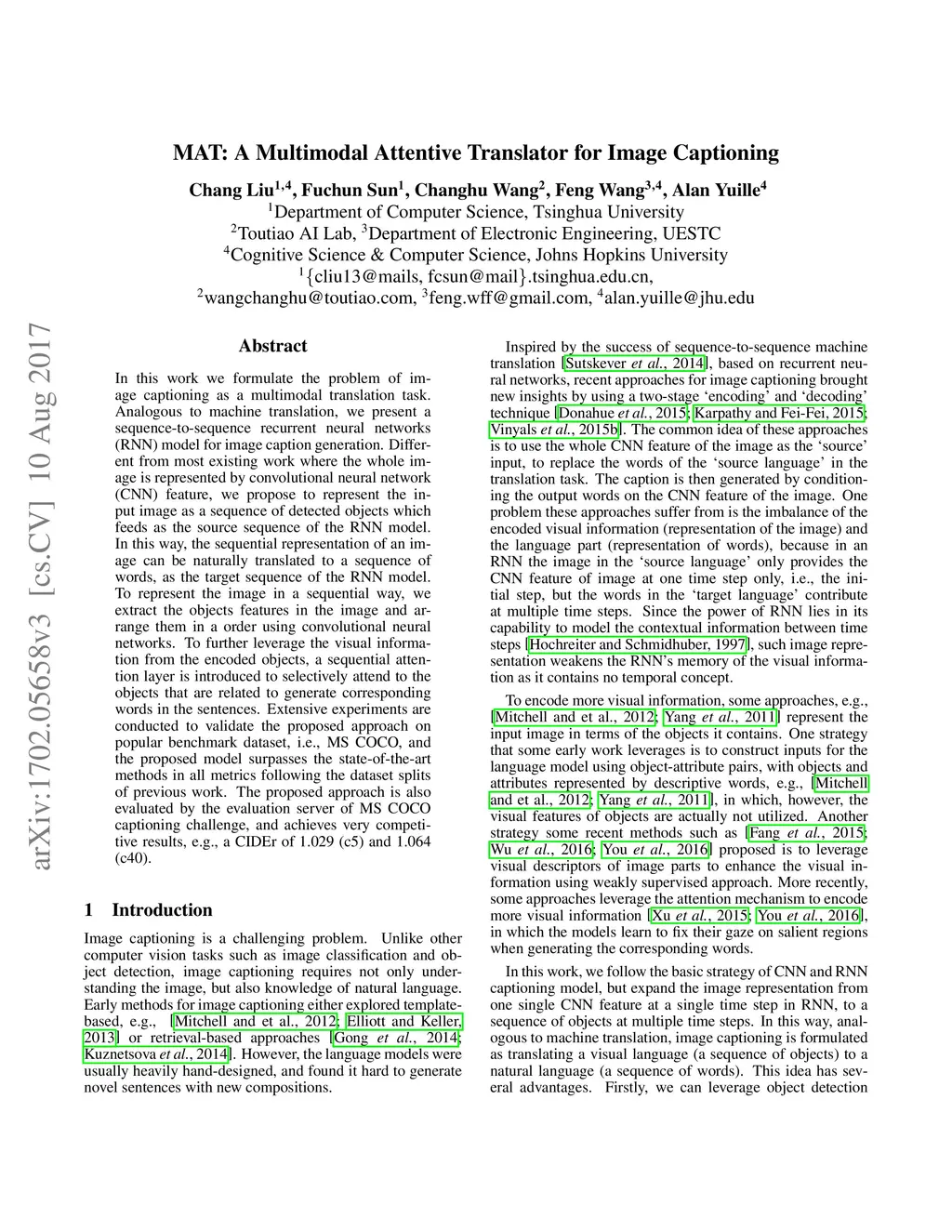 MAT: A Multimodal Attentive Translator for Image Captioning