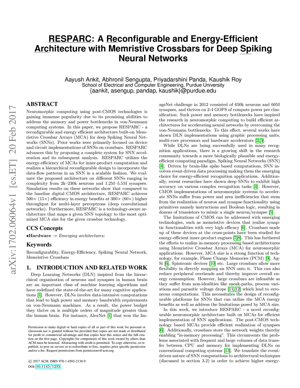 RESPARC: A Reconfigurable and Energy-Efficient Architecture with