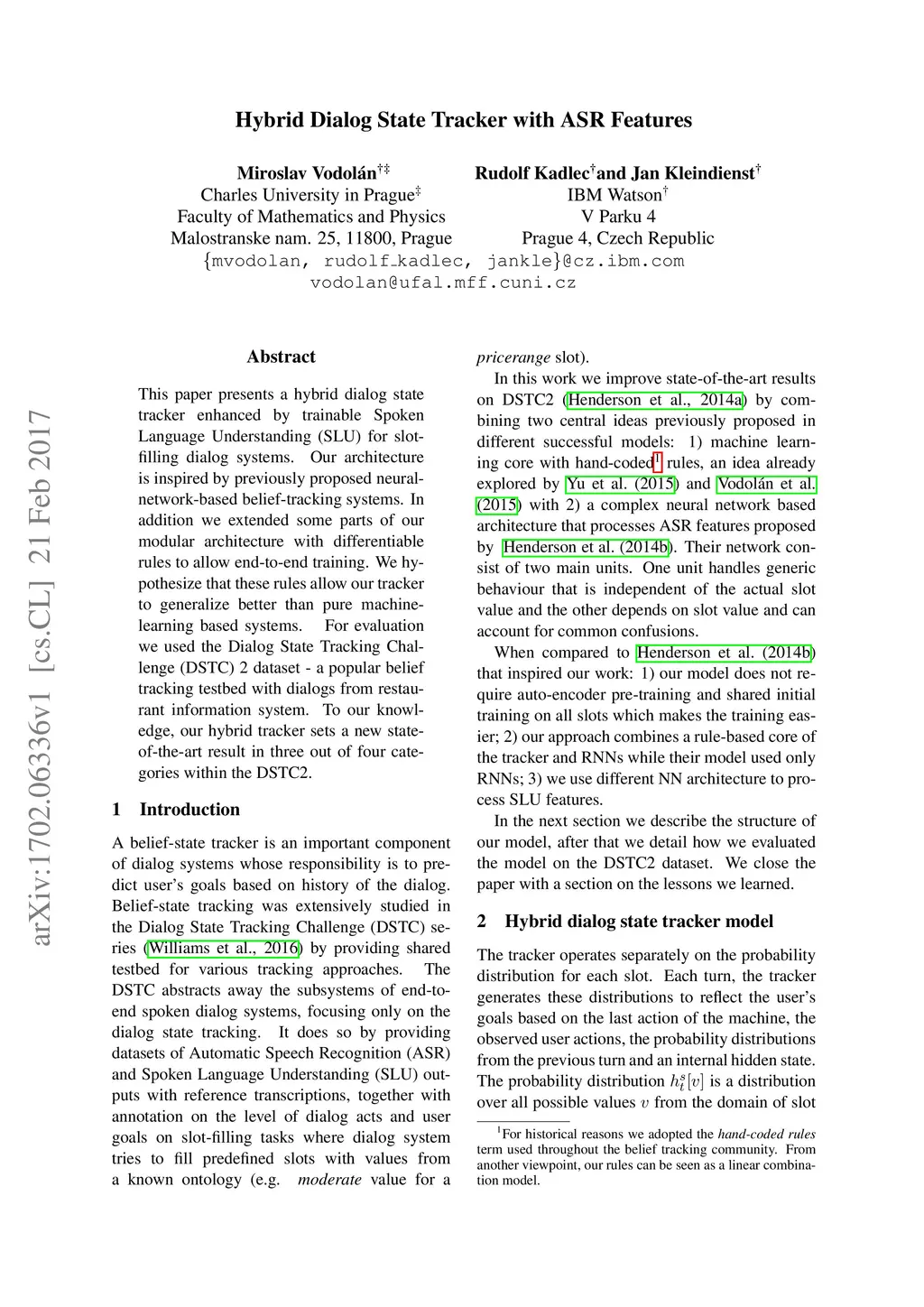 Hybrid Dialog State Tracker with ASR Features