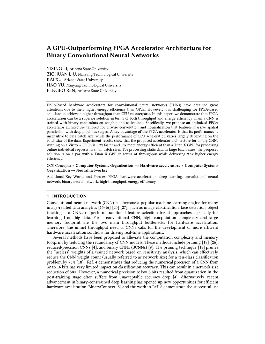 A GPU-Outperforming FPGA Accelerator Architecture for Binary