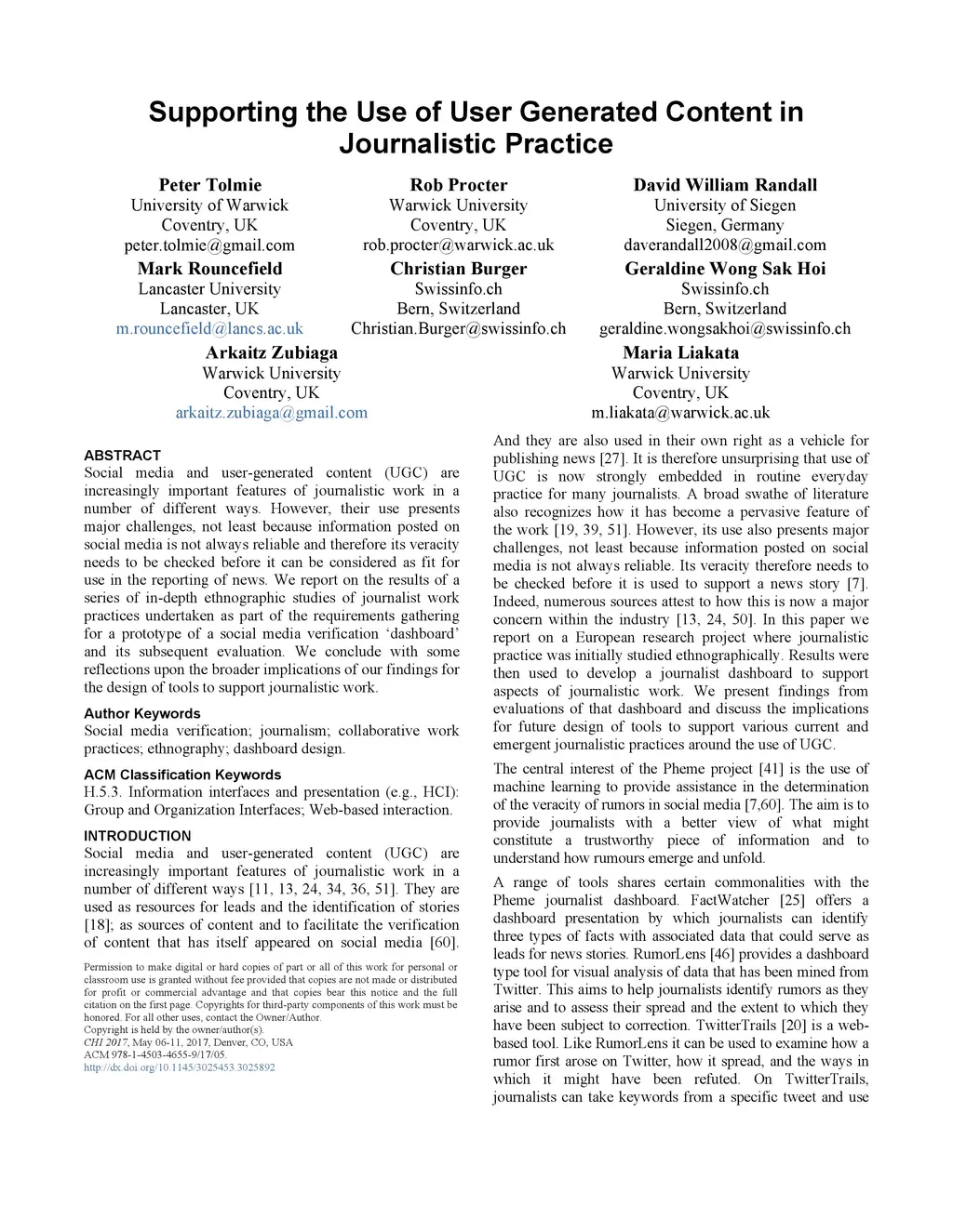 International Conference on Human Factors in Computing Systems (CHI), 2017