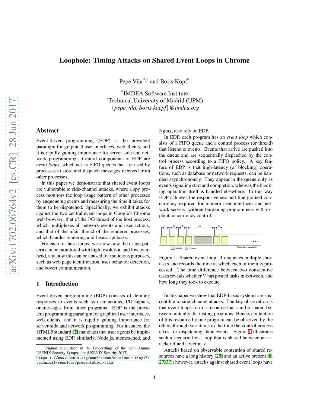 Loophole: Timing Attacks on Shared Event Loops in Chrome