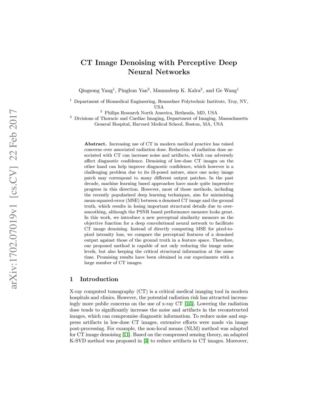Increasing use of CT in modern medical practice has raised concerns over associated radiation dose. Reduction of radiation dose associated with CT can increase noise and artifacts, which can adversely affect diagnostic confidence. Denoising of low-dose CT images on the other hand can help improve diagnostic confidence, which however is a challenging problem due to its ill-posed nature, since one noisy image patch may correspond to many different output patches. In the past decade, machine learning based approaches have made quite impressive progress in this direction. However, most of those methods, including the recently popularized deep learning techniques, aim for minimizing mean-squared-error (MSE) between a denoised CT image and the ground truth, which results in losing important structural details due to over-smoothing, although the PSNR based performance measure looks great. In this work, we introduce a new perceptual similarity measure as the objective function for a deep convolutional neural network to facilitate CT image denoising. Instead of directly computing MSE for pixel-to-pixel intensity loss, we compare the perceptual features of a denoised output against those of the ground truth in a feature space. Therefore, our proposed method is capable of not only reducing the image noise levels, but also keeping the critical structural information at the same time. Promising results have been obtained in our experiments with a large number of CT images.