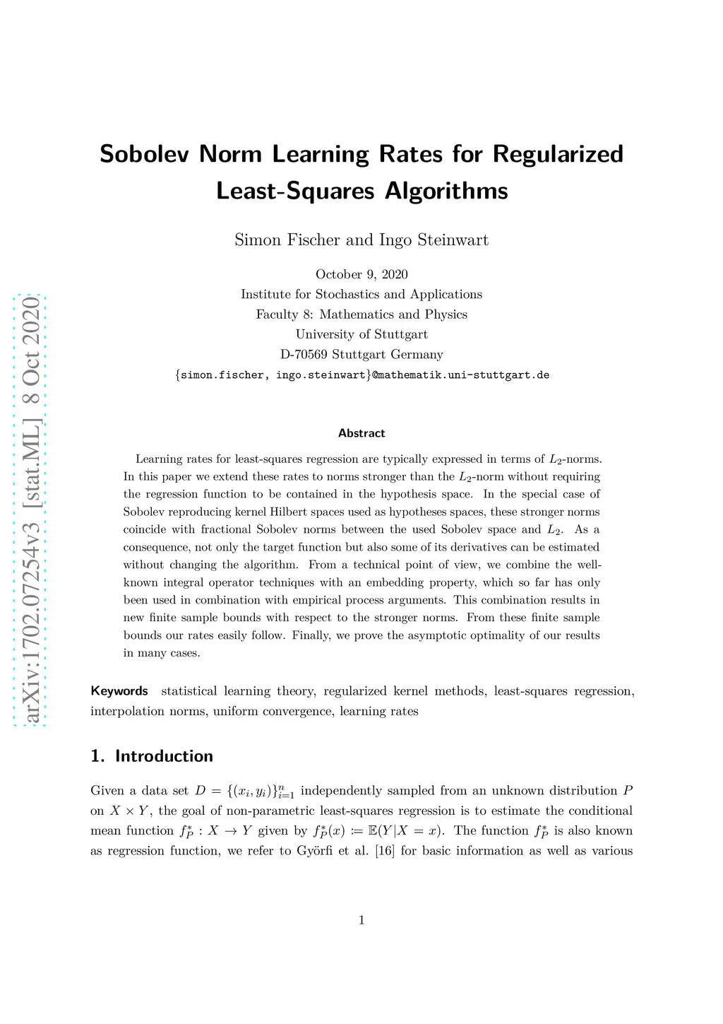 Sobolev Norm Learning Rates for Regularized Least-Squares Algorithm
