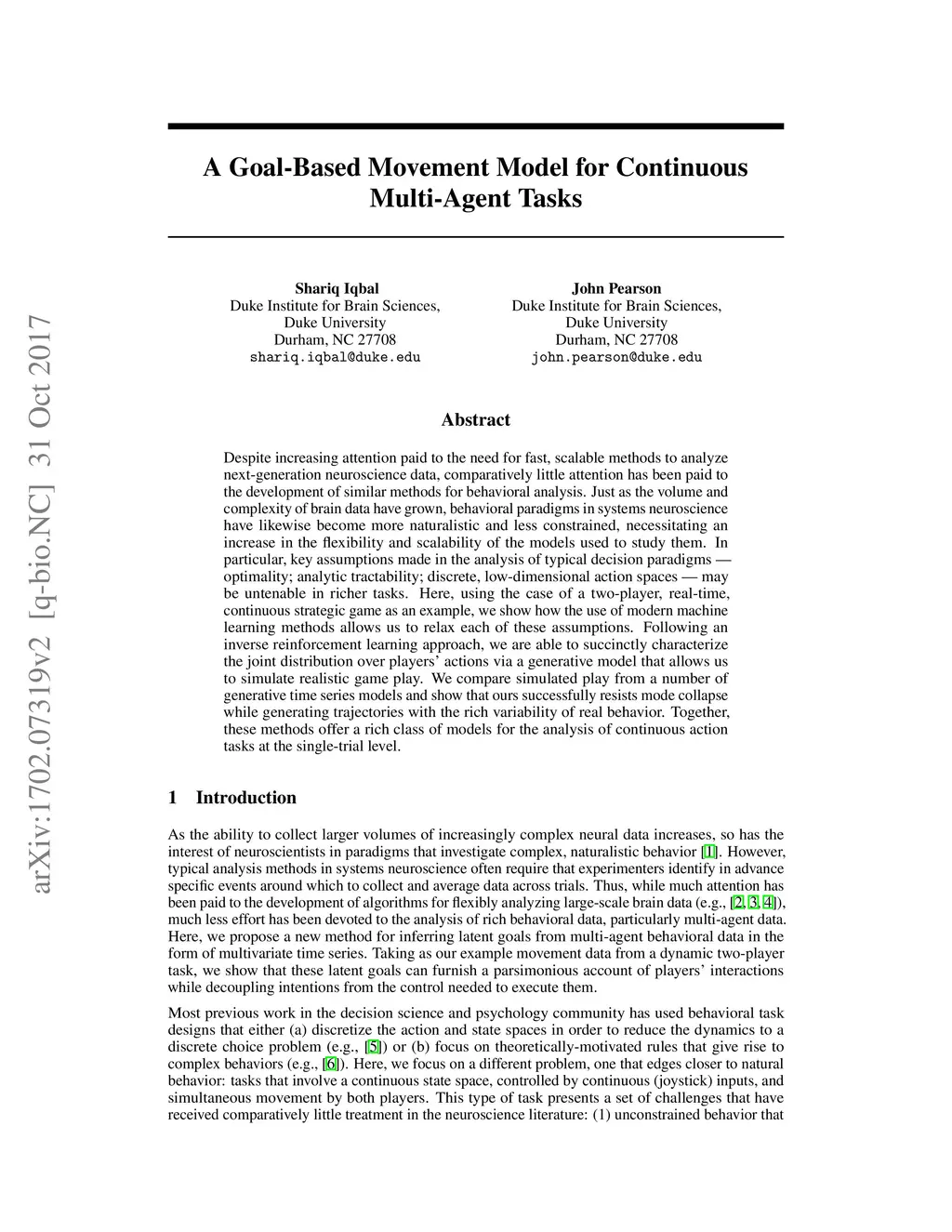 A Goal-Based Movement Model for Continuous Multi-Agent Tasks