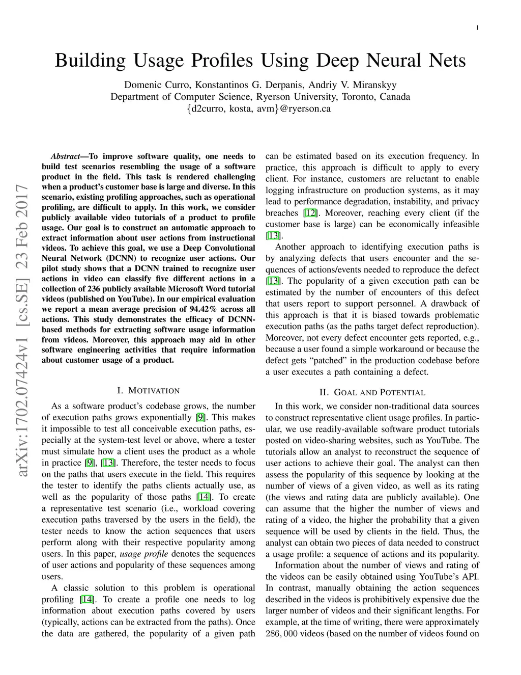 To improve software quality, one needs to build test scenarios resembling the usage of a software product in the field. This task is rendered challenging when a product's customer base is large and diverse. In this scenario, existing profiling approaches, such as operational profiling, are difficult to apply. In this work, we consider publicly available video tutorials of a product to profile usage. Our goal is to construct an automatic approach to extract information about user actions from instructional videos. To achieve this goal, we use a Deep Convolutional Neural Network (DCNN) to recognize user actions. Our pilot study shows that a DCNN trained to recognize user actions in video can classify five different actions in a collection of 236 publicly available Microsoft Word tutorial videos (published on YouTube). In our empirical evaluation we report a mean average precision of 94.42% across all actions. This study demonstrates the efficacy of DCNN-based methods for extracting software usage information from videos. Moreover, this approach may aid in other software engineering activities that require information about customer usage of a product.