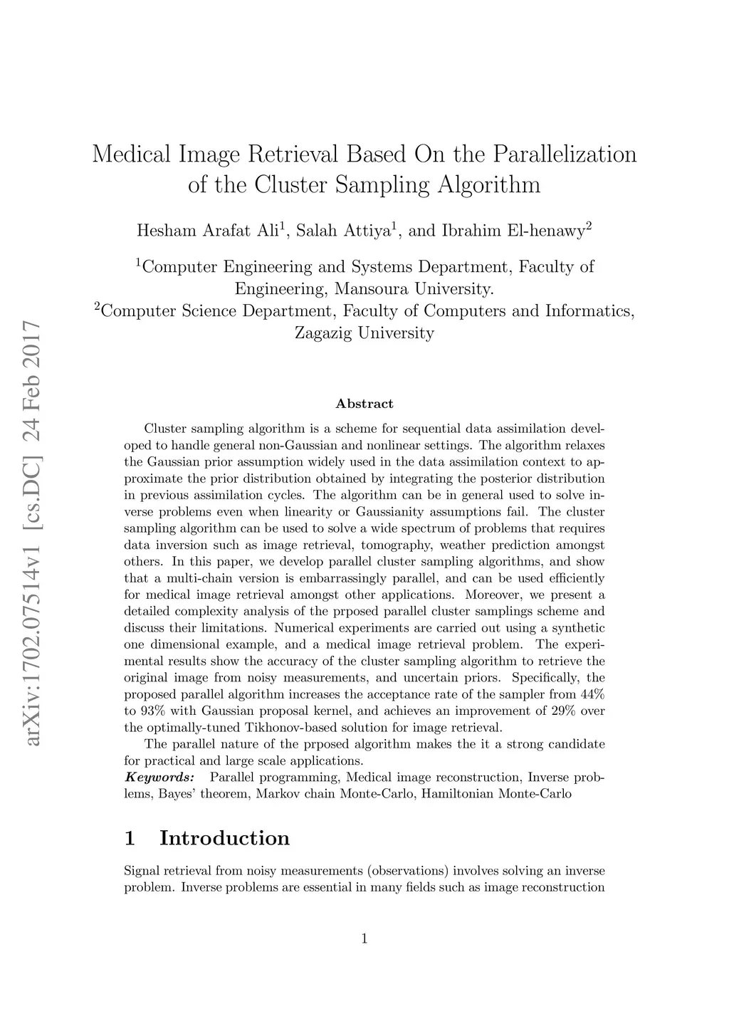 In this paper we develop parallel cluster sampling algorithms and show that a multi-chain version is embarrassingly parallel and can be used efficiently for medical image retrieval among other applications.