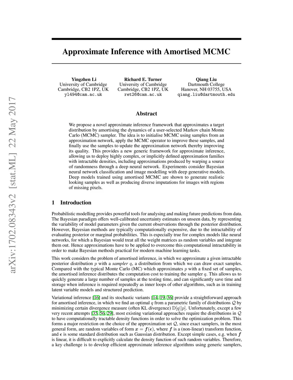 Approximate Inference with Amortised MCMC