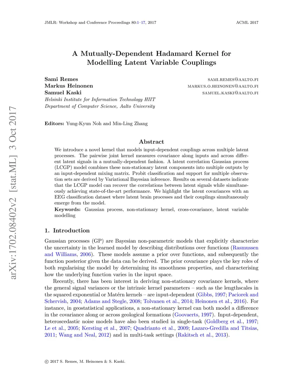 We introduce a novel kernel that models input-dependent couplings across multiple latent processes. The pairwise kernel measures covariance both along inputs and across different latent signals in a mutually-dependent fashion. The latent correlation Gaussian process (LCGP) model combines these non-stationary latent components into multiple outputs by an input-dependent mixing matrix. Probit classification and support for multiple observation sets are derived by Variational Bayesian inference. Results on several datasets indicate that the LCGP model can recover the correlations between latent signals while simultaneously achieving state-of-the-art performance. We highlight the latent covariances with an EEG classification dataset where latent brain processes and their couplings simultaneously emerge from the model.