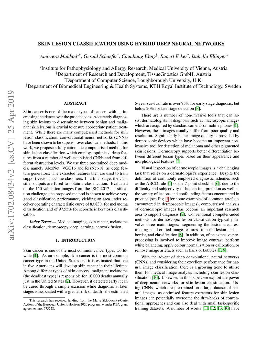 Skin Lesion Classification Using Hybrid Deep Neural Networks