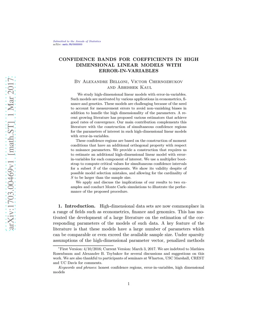 We study high-dimensional linear models with error-in-variables. Such models are motivated by various applications in econometrics, finance and genetics. These models are challenging because of the need to account for measurement errors to avoid non-vanishing biases in addition to handle the high dimensionality of the parameters. A recent growing literature has proposed various estimators that achieve good rates of convergence. Our main contribution complements this literature with the construction of simultaneous confidence regions for the parameters of interest in such high-dimensional linear models with error-in-variables. These confidence regions are based on the construction of moment conditions that have an additional orthogonal property with respect to nuisance parameters. We provide a construction that requires us to estimate an additional high-dimensional linear model with error-in-variables for each component of interest. We use a multiplier bootstrap to compute critical values for simultaneous confidence intervals for a subset of the components. We show its validity despite of possible model selection mistakes, and allowing for the cardinality of to be larger than the sample size. We apply and discuss the implications of our results to two examples and conduct Monte Carlo simulations to illustrate the performance of the proposed procedure.