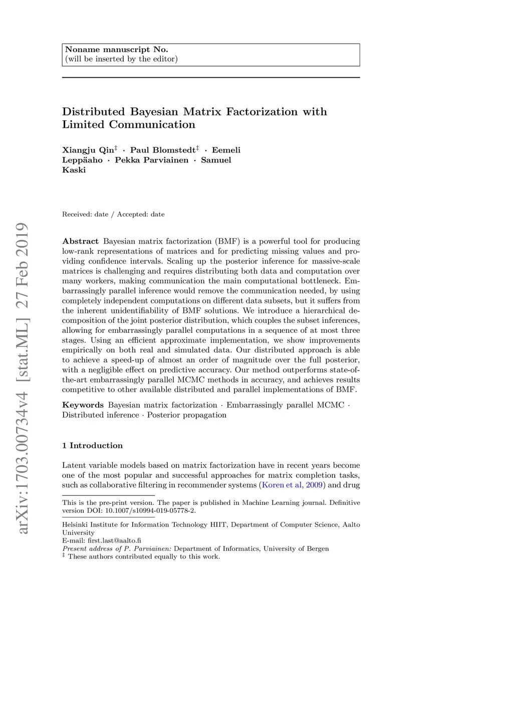 Distributed Bayesian Matrix Factorization with Limited Communication
