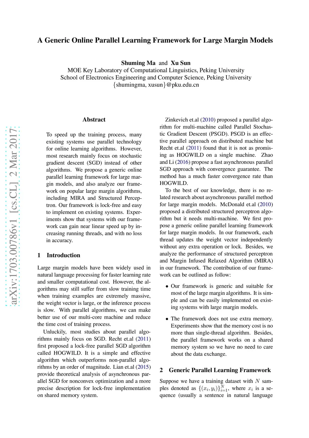 A Generic Online Parallel Learning Framework for Large Margin Models