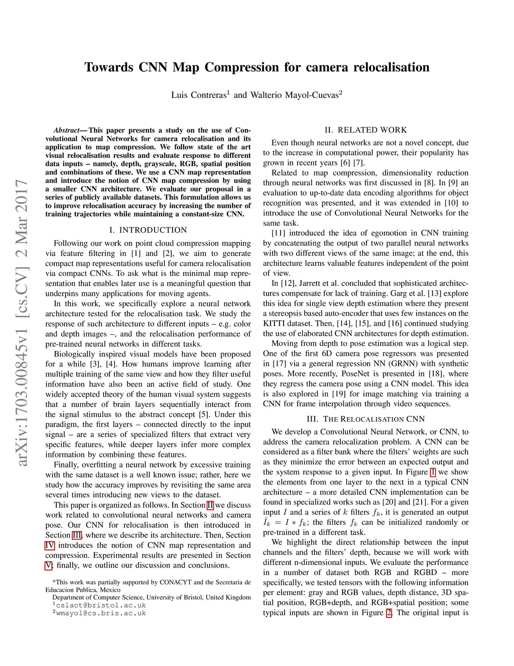 Towards CNN Map Compression for camera relocalisation